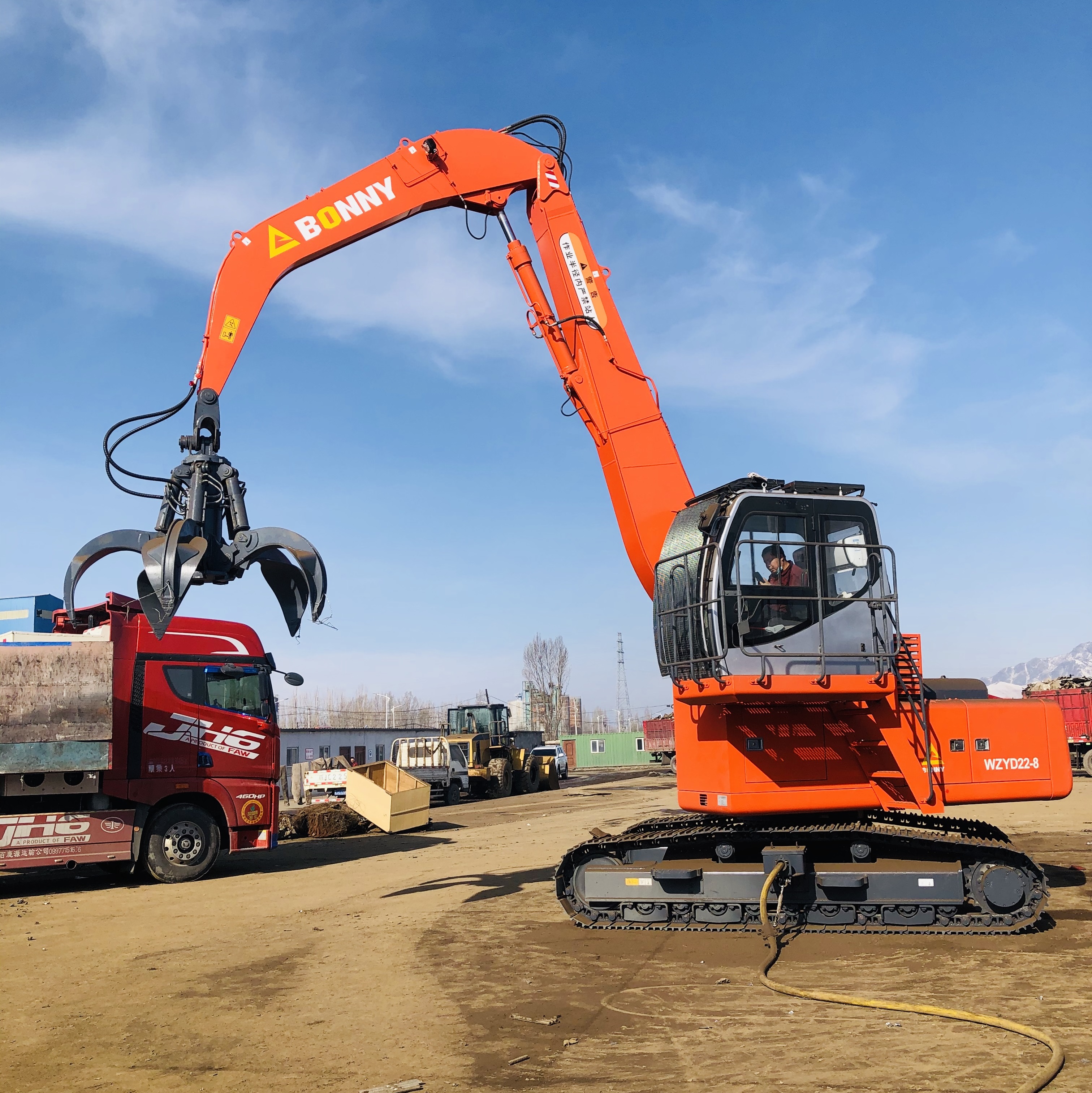 ●可以選擇配備多種工作裝置(抓斗)實現(xiàn)廢鋼、圓木、木屑、原煤、草料等多種物料的抓取、裝卸